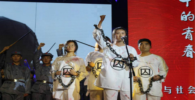 同学们演绎旧时的战士