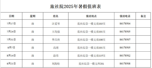 2025年暑假值班表