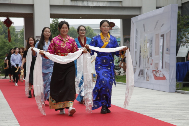 在身穿藏族服饰的毕业生的带领下,全体毕业生向公司献上哈达,踏着舒缓的音乐走上舞台,从老师手里接过毕业证书,在老师、家长、同学和物管阿姨的见证下合影留念,留下青春最美的一刻。
