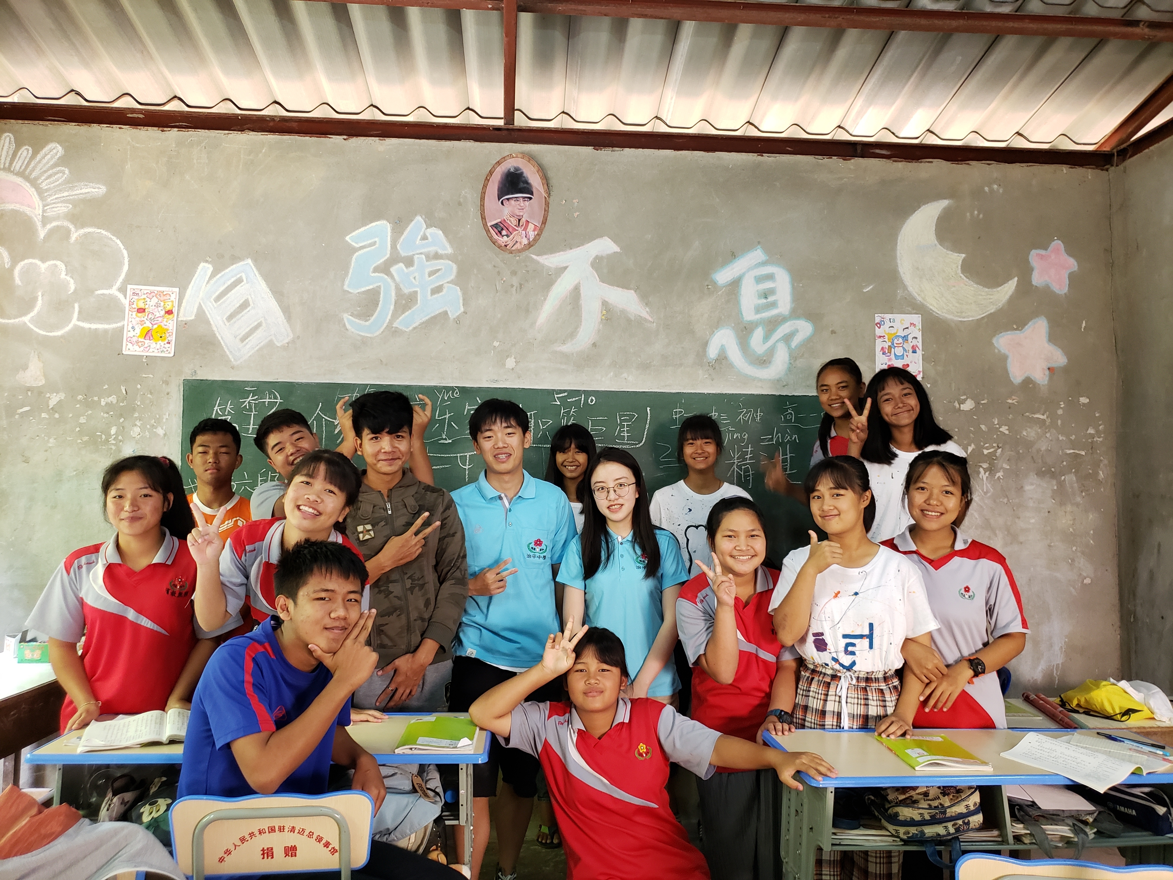 回顾短暂的异国时光,也只能用“不虚此行”来概括此次丰富充实的经历。在湿热的泰北乡间,我一次次被村民的热情淳朴、孩子们的纯真善良所打动,又一次次感慨相同的语言文字所蕴含的强大力量——连接起相隔千山万水不同国度的人们。支教期间,我为中一、中二班的同学讲授似乎与他们的生活相去甚远的文言与诗歌,向他们说起于他们而言已有些遥远的中国文化,与他们在泥泞的土地上谈天说地,也同他们在漏雨的教室里一同唱歌。回国后我总反复回忆起分别之际同学们齐唱我们教给他们的《再见》时的场景。