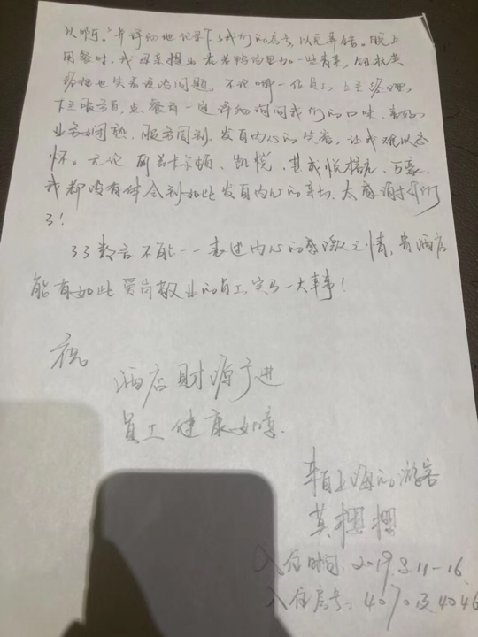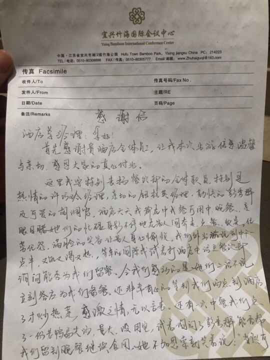 客人写的感谢信