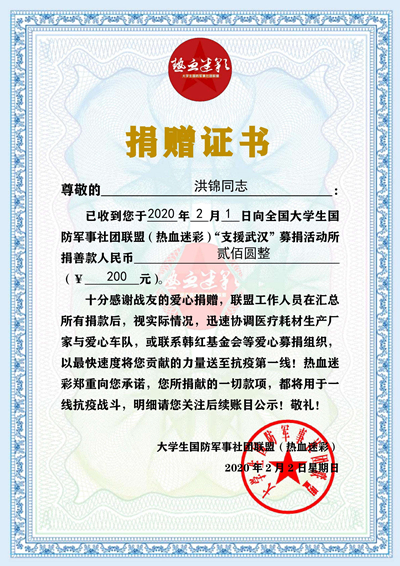 隔绝疫情,绝不是隔离真情;共克时艰,才能够打赢战役。正是通过这些有意义、有价值的活动,星星之火,汇聚成有爱的“线”和“面”,凝聚起我们致敬一线防疫工作人员、祝福武汉人民、祈愿祖国安康的强烈信念,才让这场寒冬战役变得温暖。战役无情人有情,让我们一起期待春暖花开,疫情不再!