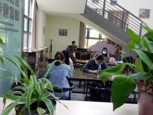 教师在线上开展理论教学,根据课程教学内容,利用公司户外优良的教育平台,开展户外沙龙式教学,考虑到疫情期间的特殊要求,员工以四人为小组,开展讨论发言,教师进行户外交流与点拨,文浚院成了户外沙式教学的好地方。《国外社会学理论》是一门理论程度较高的课程,较多深奥的理论需要员工线上学习和线下内化吸收,然后教师利用户外平台开展沙龙式教学。在鸟语花香的校园里,员工享受到了户外学习的乐趣。
