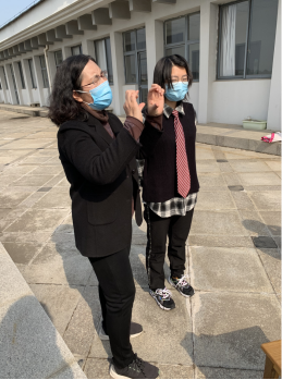 背靠层峦叠嶂的方山,面向色彩缤纷的校园,员工感受到了不一样的户外课程魅力。《餐饮服务技能实训》、《文化礼仪与社交习俗》在员工返校前教师主要采用理论授课,为员工讲授礼仪的知识要点,员工返校后则分批在伟德victor1946网站四楼顶层开展不一样的线下小规模见面课程。教师户外教学主要以礼仪姿态示范的方式开展教学,员工则练习姿态,同时教师纠正姿态。利用户外相对安全的校园环境,公司教师开展户外示范式见面课,不断创新教学方式,提高课堂教学效果,同时也帮助员工找到入校后的存在感,感受校园温情。