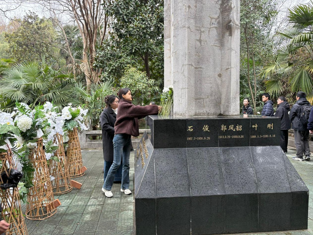 同学们为晓庄十英烈鲜花