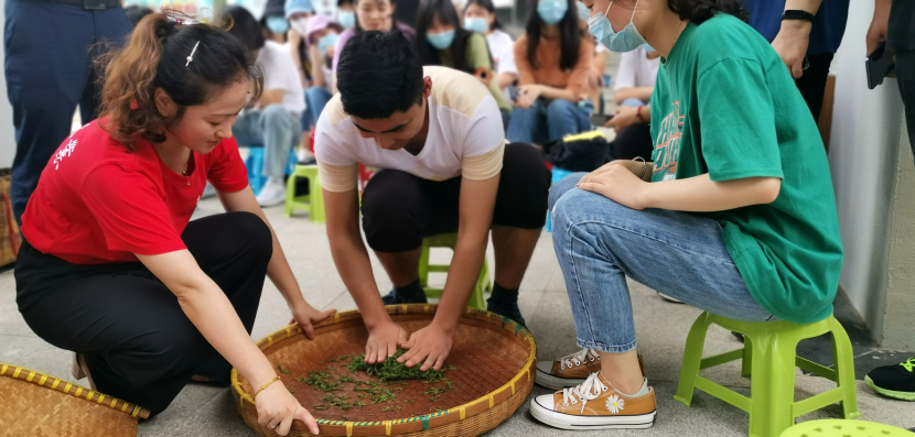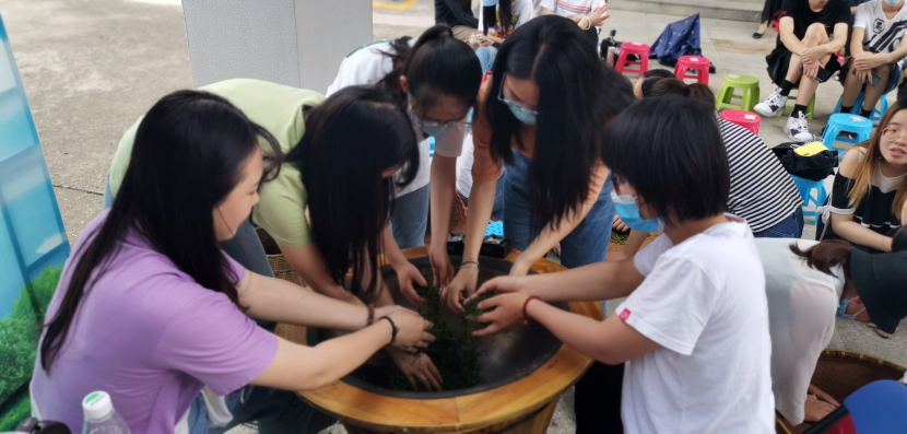 在讲座中,陈盛峰老师向同学们展示了当天采摘的新鲜茶叶制作成雨花茶的过程,同学们自己动手,亲手制作了自己人生中的第一份手工茶叶。