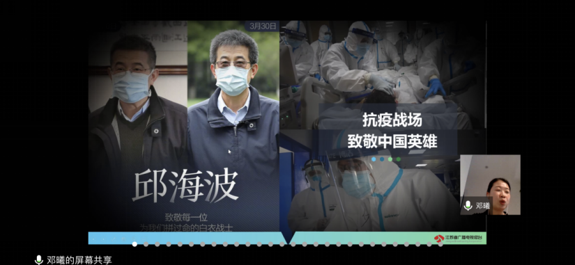 她的报告,向师生们展现了这个时代的英雄应该是什么样的?她在采访中央指导组专家组成员邱海波的回答,至今还深深地印刻在她心里:“进了病房,看到病人氧在往下掉,心率在往下掉,那时候完全不会想到害怕、担心,只想着治病救人,让一个生命延续下去!”邓记者在抗疫一线捕捉到感人的瞬间,让每一个感受到了从抗疫钱箱传递下来的“温暖”和“光亮”。