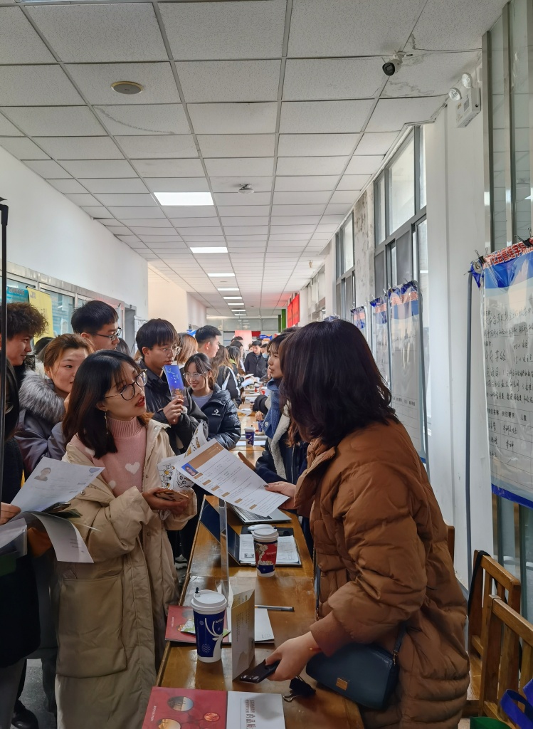 本次招聘会共邀请40多家单位参加,提供职位300多个, 天气虽然寒冷,但员工热情很高。各家招聘单位展台前聚满了前来应聘的员工,各招聘单位负责人耐心地为同学们讲解公司情况、岗位要求、晋升渠道、福利待遇等。公司相关负责人、辅导员来到现场与用人单位详细沟通,了解招聘单位用人需求,扎实做好公司2021届毕业生就业工作。
