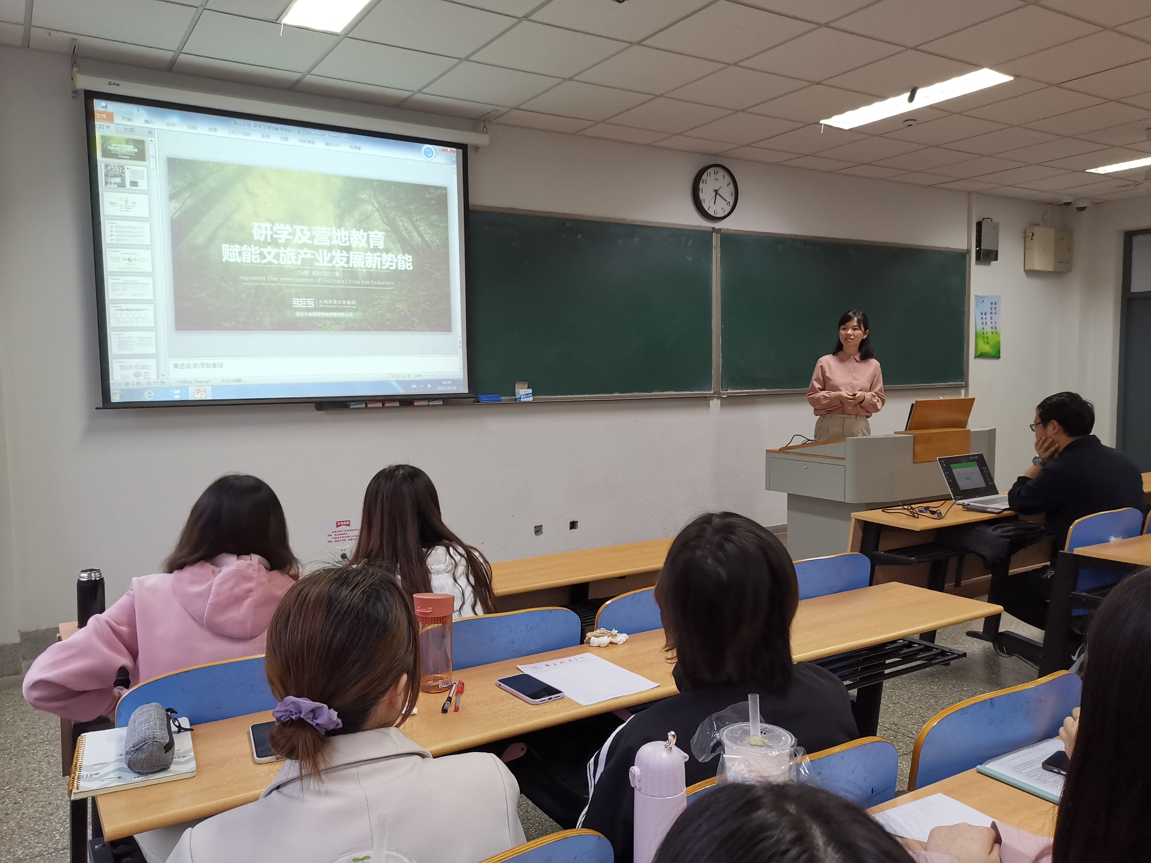 4月22日周四晚上伟德victor1946网站邀请了大地风景文旅集团南京营地公司孙秋静副总经理、吕英君设计师为同学们作了题为“研学与营地教育赋能文旅产业发展新势能”的讲座。孙秋静副总经理主要研究方向为文旅体验及创新发展,多次在行业领域及北京大学文化产业论坛上发表规划设计创新转型主题演讲并引起业界关注。孙总给同学们讲授了研学、营地的概念及未来千亿级的市场,并提出了营地教育赋能文旅的五种路径,如营地教育+景区、营地教育+特色小镇、营地教育+乡村、营地教育+文化空间、营地教育+城市空间等。吕英君设计师为同学们分享了多个教育赋能文旅产业发展的经典案例,孙秋静副总经理鼓励同学们找到兴趣点,交叉融合,发挥师范院校的优势,突出教育+旅游的特色优势,找到自己的未来发展方向。