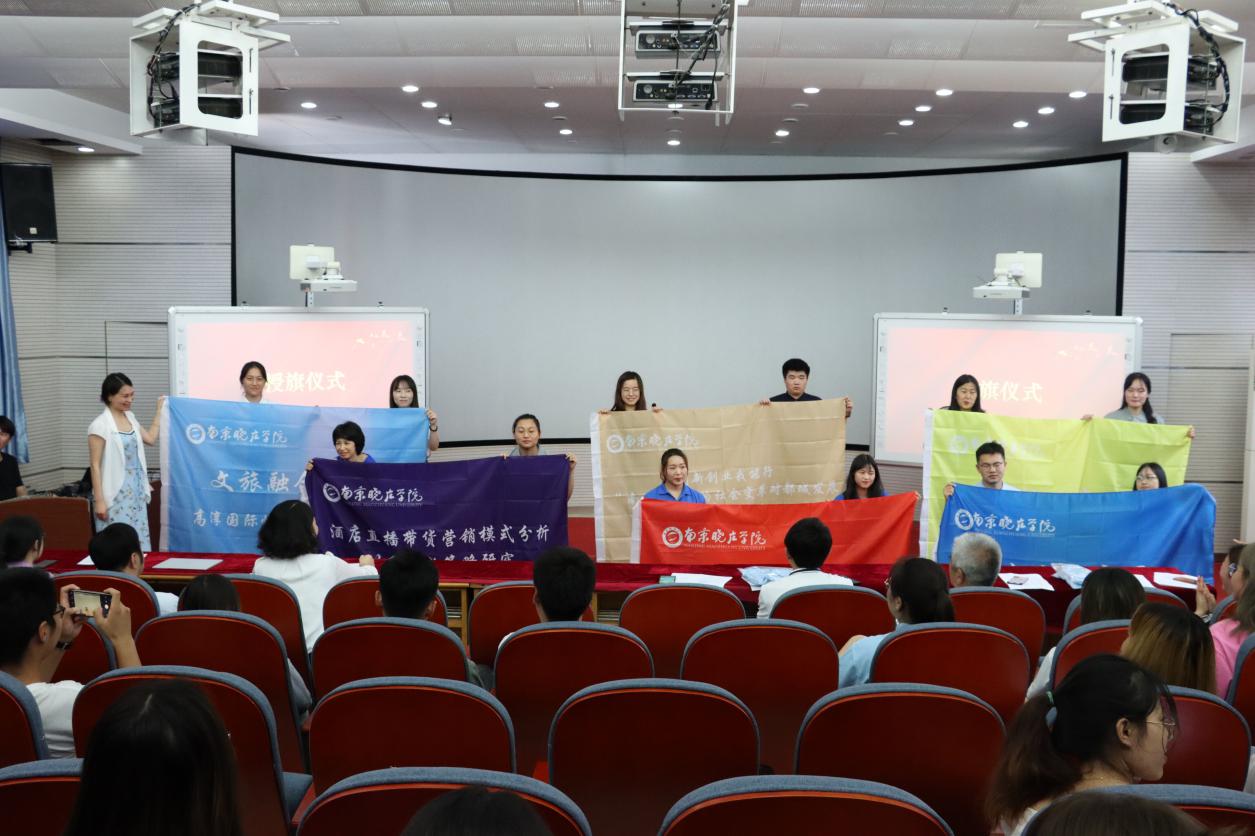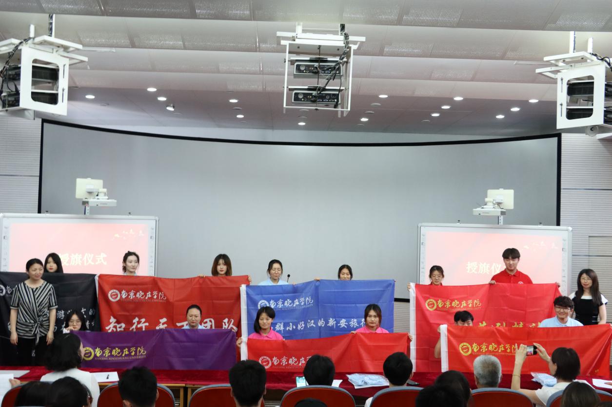 仪式上,王均强老师宣读了团队院级立项名单,刘佳雪教授、余子萍副教授、董红艳老师和王瑾老师为立项团队授旗并合影留念。实践团队员工代表杜立格同学上台发言,她分享了自身的实践历程与感悟,并表达了对本次暑期社会实践的期待。分团委书记葛茹老师为大家讲解了暑期社会实践具体细则。