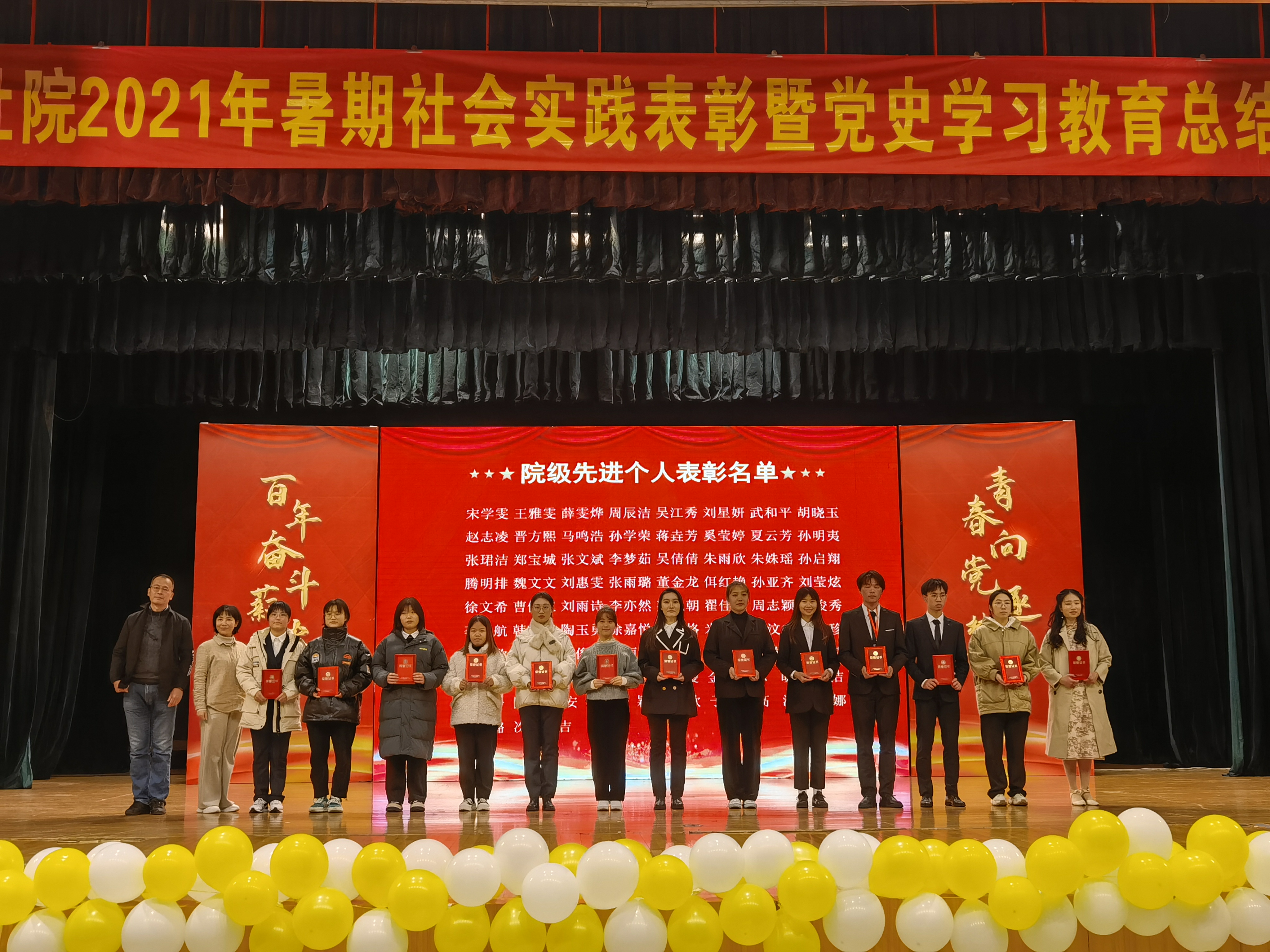 11月23日晚上18:00,公司在方山音乐厅举办了2021年暑期社会实践表彰暨党史学习教育总结大会。公司党总支吴鑫书记、孙景荣副书记副经理、涂玮副经理、以及公司全体师生参加了大会,大会由赵文迪、高婉君主持。