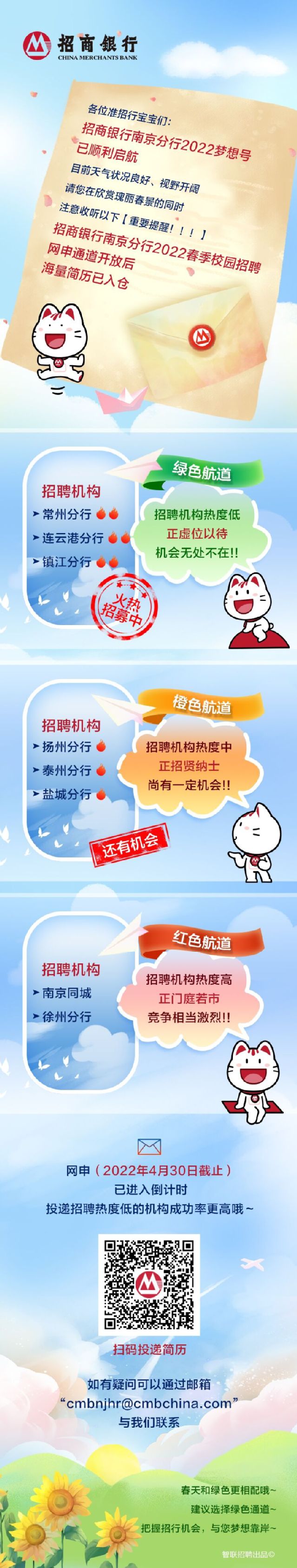 招商银行2022校招正在进行,岗位有很多不限专业,经沟通联系,公司老师推荐的员工可直接参加笔试环节,请各位大力宣传,推荐表和招聘地区热力图已上传,供参考。推荐表请于4月27日17:00前反馈至cmbnjhr@cmbchina.com或cmbnjzp@163.com邮箱;反馈邮件标题:伟德victor1946网站员工推荐表;温馨提示:被推荐员工需通过招商银行官方渠道报名后,方可被推荐!