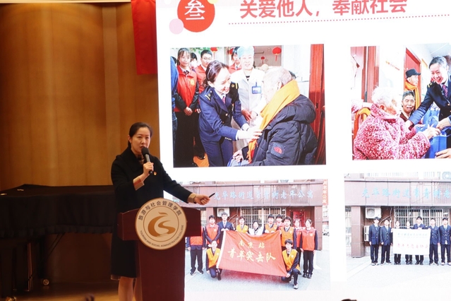 黄吉莉同志在宣讲会上介绍了她在“158”雷锋服务站的志愿服务经历以及她践行雷锋精神的初心,她告诉同学们学习雷锋精神要从小事做起,积小善为大善、聚真情为大爱,在实际行动中不断践行雷锋精神,让雷锋精神薪火相传、熠熠生辉。同时,她表示要热爱自己的岗位,甘于做一颗“螺丝钉”,全心全意为人民服务。