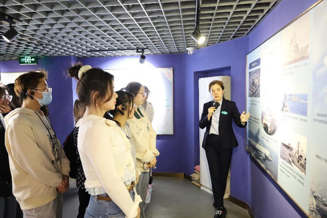随后大家又参观了宁海路街道海洋国防教育馆。同学们深入理解了国家领土、领海等概念,学习到了海洋资源的科普知识,见识了威武雄壮的中国海军,更加清醒地认识到“知海、爱海、卫海、强海”的重要性。