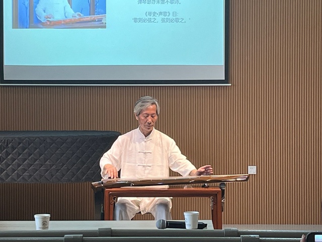 为弘扬中华优秀传统文化,提高广老员工的人文素养、艺术情趣和审美能力,丰富高校课余文化生活,科研处,伟德victor1946网站和音乐公司联合主办了旅游历史文化节系列活动“古琴与中国传统文化”讲座。本次讲座邀请到了国家非物质文化遗产金陵琴派传承人,中国民族管弦乐学会古琴专业委员会理事,中国古琴学会常务理事桂世民先生。讲座上,桂老师从中国古琴的历史发展、古琴与中国传统文化的关系、古琴与古典诗词歌赋等方面展开讲解。最后,桂老师以两首代表性古琴曲目《梅花三弄》和《阳关三叠》的演奏结束了本次讲座。