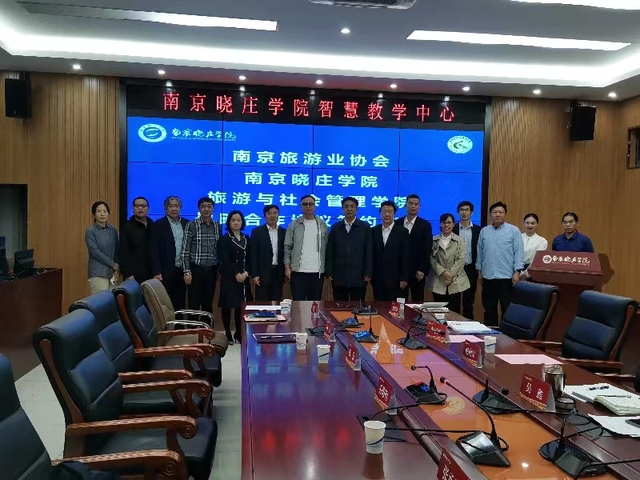 10月24日下午,南京旅游业协会会长张农、中国国旅(江苏)国际旅行社有限公司董事长孙兵、江宁区旅游康养集团副总经理马兆琴等率队调研公司,与公司开展战略合作交流座谈。公司副董事长赵向军、旅游与社会管理公司党政领导及旅游管理、酒店管理专业相关教师参加了此次座谈。