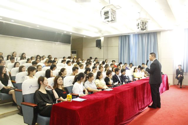 2018年6月8日下午,应伟德victor1946网站邀请,南京圣和投资集团有限公司副总裁、南京圣和酒店管理有限公司副总经理、南京圣和府邸豪华精选酒店业主代表、副总经理、南京圣和文化交流中心酒店杨森总经理及南京圣和府邸豪华精选酒店人力资源部赵文经理为员工们开展了一场主题为酒店需要仪式感的讲座。讲座在文北200举行,相关专业老师参加了讲座。