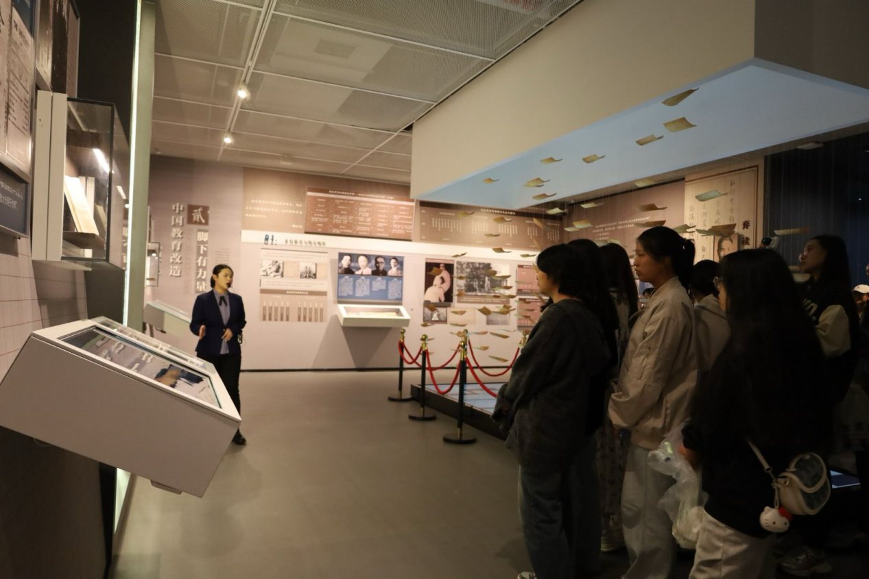 在志愿讲解队成员们的带领下,新生们首先参观了师德教育观馆。馆内陈列的一幅幅珍贵历史照片和一篇篇详实的文献资料,生动地展现了陶行知先生为中国教育事业殚精竭虑、不懈奋斗的光辉历程。同学们全神贯注地聆听讲解,时而驻足凝视,时而轻声交流,仿佛在与陶行知先生进行一场跨越时空的对话。他们被陶行知先生“捧着一颗心来,不带半根草去”的大爱奉献精神深深打动。